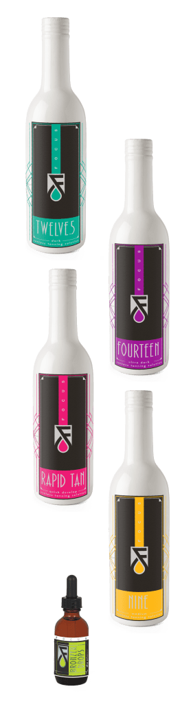 A sleek, simplistic design indicative of the largest cosmetic brands, the logo was stripped to absolutely minimal visuals. Color was kept as an important element, used as an easy way to distinguish the DHA percentages. This solved a noted problem with customers ordering the wrong solution because mistaken identity with repetitive design.