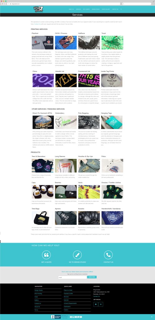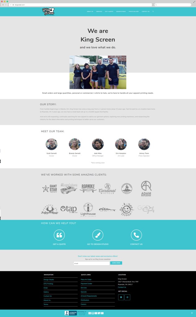 Redesign the screen printing website focusing on a rebrand of being a locally-owned, community building business.